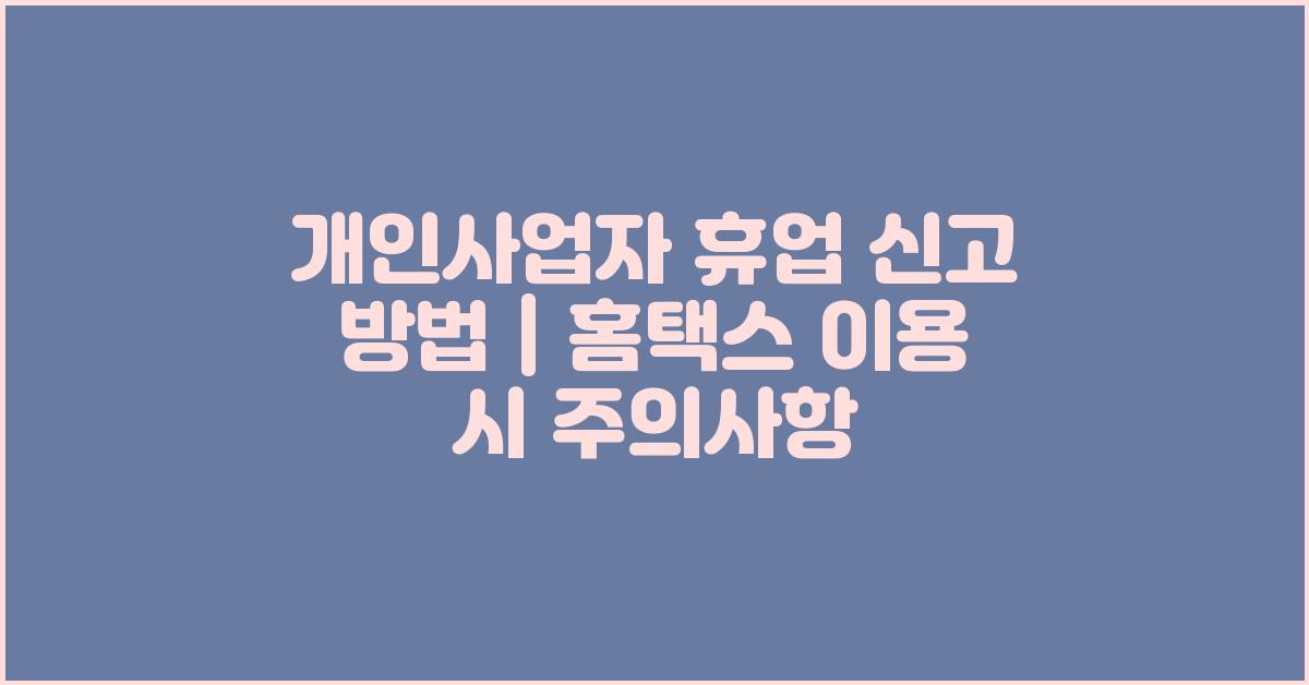 개인사업자 휴업 신고 방법 | 국세청 홈택스 이용 안내에 따르면, 신고 시 몇 가지 유의해야 할 사항들이 있습니다. 첫째, 휴업 기간을 정확히 설정해야 합니다. 일반적으로 1개월 이하로 휴업하는 경우, 간단한 신고로 처리할 수 있지만, 그 이상이 될 경우 추가 서류가 필요할 수 있습니다.