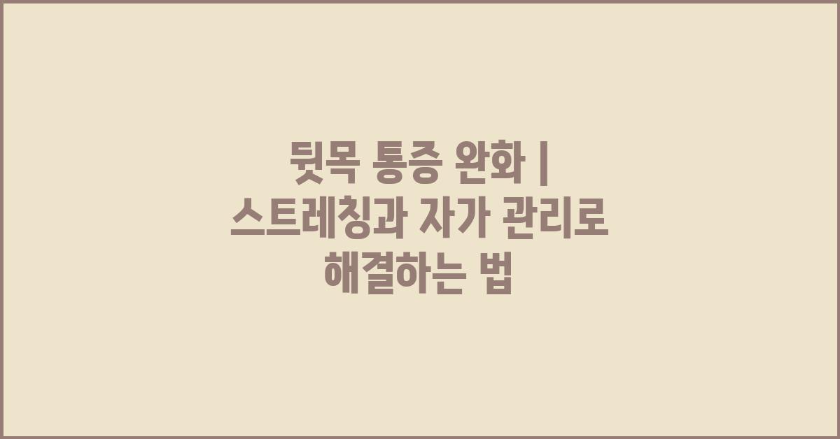 그래서 이번에는 뒷목 통증 완화 | 스트레칭과 자가 관리법에 대해 깊이 있게 알아보려고 합니다. 단순히 통증을 없애는 것이 아니라, 우리의 생활 속에서 예방할 수 있는 방법도 함께 알아보겠습니다. 첫 번째 단계는 정확한 스트레칭 기법을 배우는 것입니다. 간단한 스트레칭을 통해 놀랍도록 큰 효과를 볼 수 있다는 사실, 여러분도 놀라실 거예요!