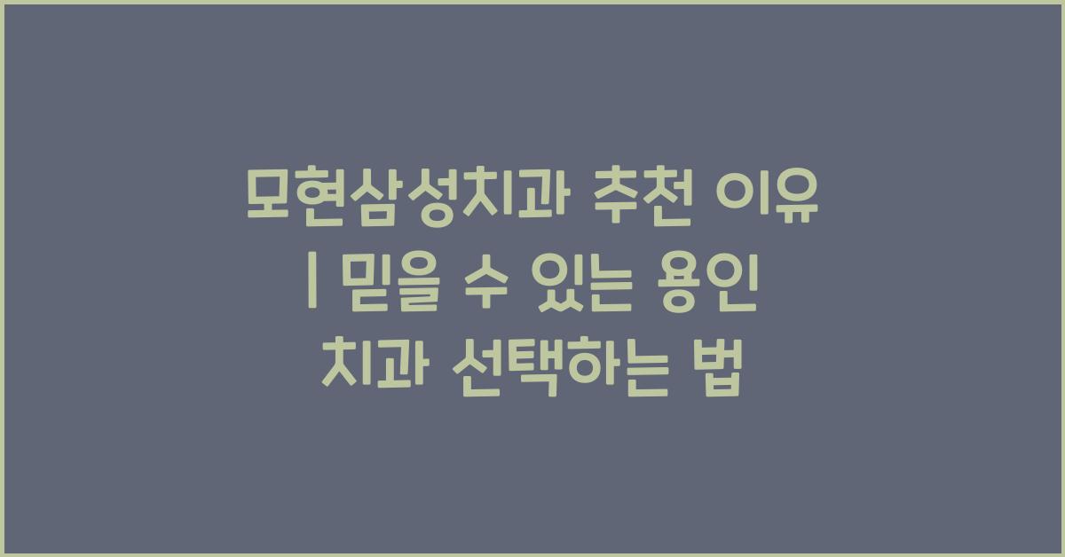 용인 지역에서 치과를 선택해야 할 순간이 오면, 여러 가지 고민이 생기곤 합니다. 그 중에서도 '모현삼성치과 추천 이유'는 많은 분들이 물어보는 질문입니다. 저는 최근에 치과 치료를 받아본 경험을 통해 이곳의 여러 장점을 소개하고 싶습니다. 이 치과가 왜 믿을 수 있는 곳인지에 대한 제 개인적인 생각과 경험을 나누어 보겠습니다.