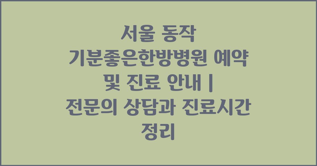 Q1: 서울 동작 기분좋은한방병원 예약은 어떻게 하나요?