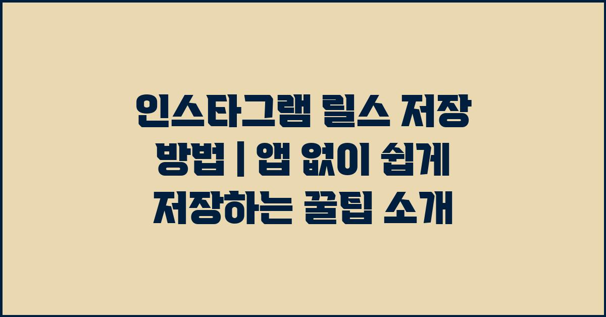🔑 인스타그램 릴스 저장 방법 | 앱 없이 간편하게 저장하기