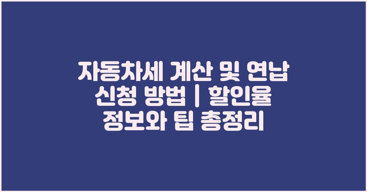 자동차세 계산 및 연납 신청 방법 | 할인율 정보 포함을 알아보기 위해서는 먼저 자동차세 계산 방법을 이해하는 것이 중요합니다. 자동차의 배기량이 주된 기준이 되며, 눈여겨봐야 할 점도 있습니다. 예를 들어, 만약 1,000cc 이상의 차량을 운전하신다면, 세금이 더 높아질 수 있습니다. 반면, 전기차나 하이브리드 자동차는 할인 혜택이 있는 경우가 많습니다.