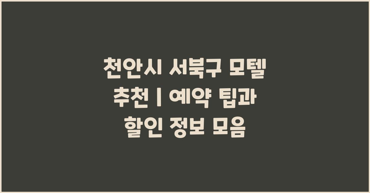 천안시 서북구 모텔 추천 | 예약 방법 및 할인 정보에 대한 이야기를 끝으로, 보다 스마트한 여행을 계획하시길 바랍니다! 여러분의 한 번의 결정이 행복한 여행으로 이어질 수 있습니다!