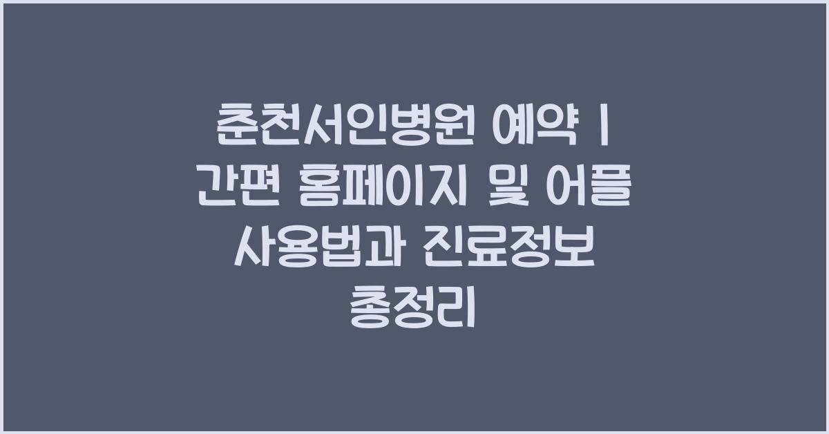 가끔은 병원 예약이 복잡하게 느껴지기도 하죠? 하지만 춘천서인병원은 누구나 쉽게 홈페이지와 어플을 통해 할 수 있도록 만들어져 있습니다. 제가 처음 예약했을 때, 어떻게 그렇게 쉽게 할 수 있었는지 정말 신기했어요. 그래서 오늘은 여러분에게 춘천서인병원 예약을 어떻게 간편하게 하고, 홈페이지와 어플 사용법 및 진료정보를 전해드리려 합니다.
