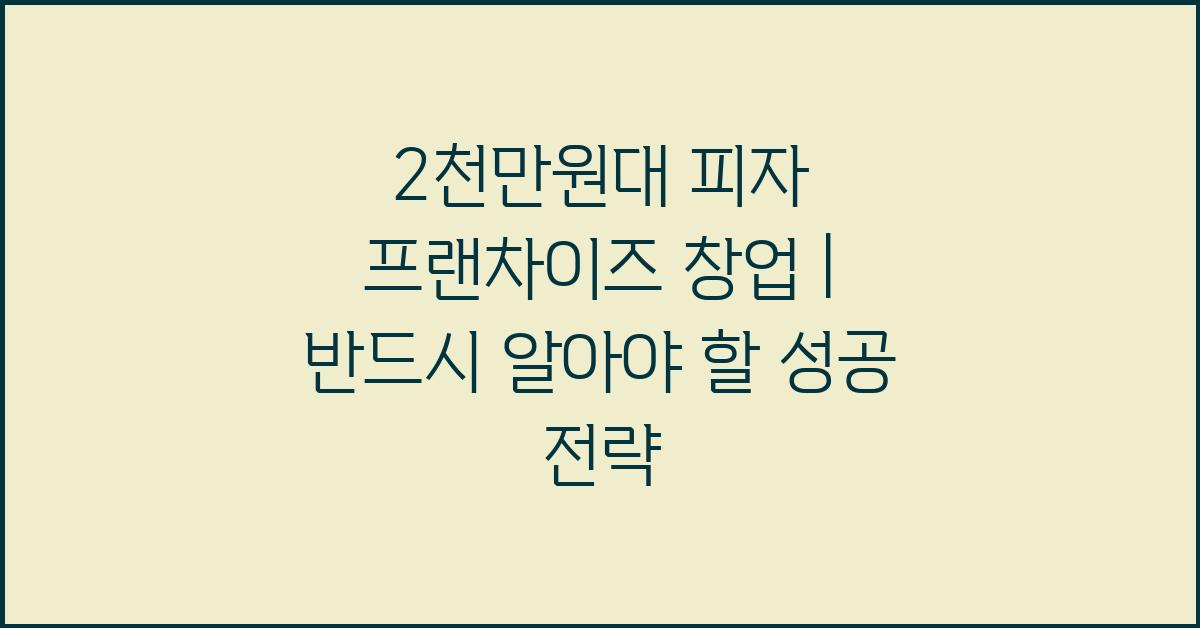 2천만원대 피자 프랜차이즈 창업은 다양한 기회의 장이 될 수 있습니다. 다만, 성공을 위해서는 충분한 준비와 분석이 필요합니다!
